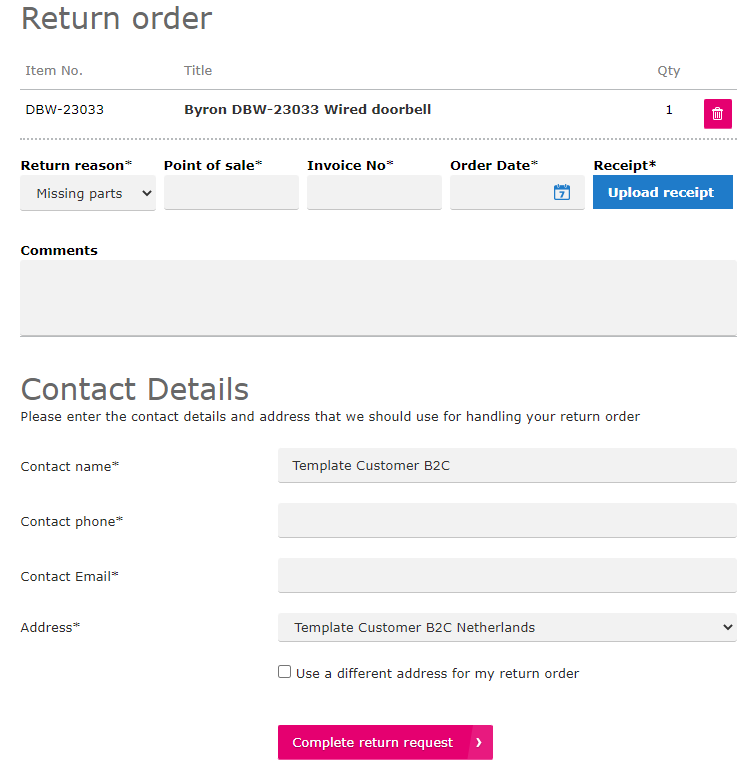 A meno che un prodotto non sia stato acquistato direttamente da Smartwares (ad esempio, parti di ricambio), non è necessario inserire un numero di fattura nel campo. In questo caso, utilizzare "00000".